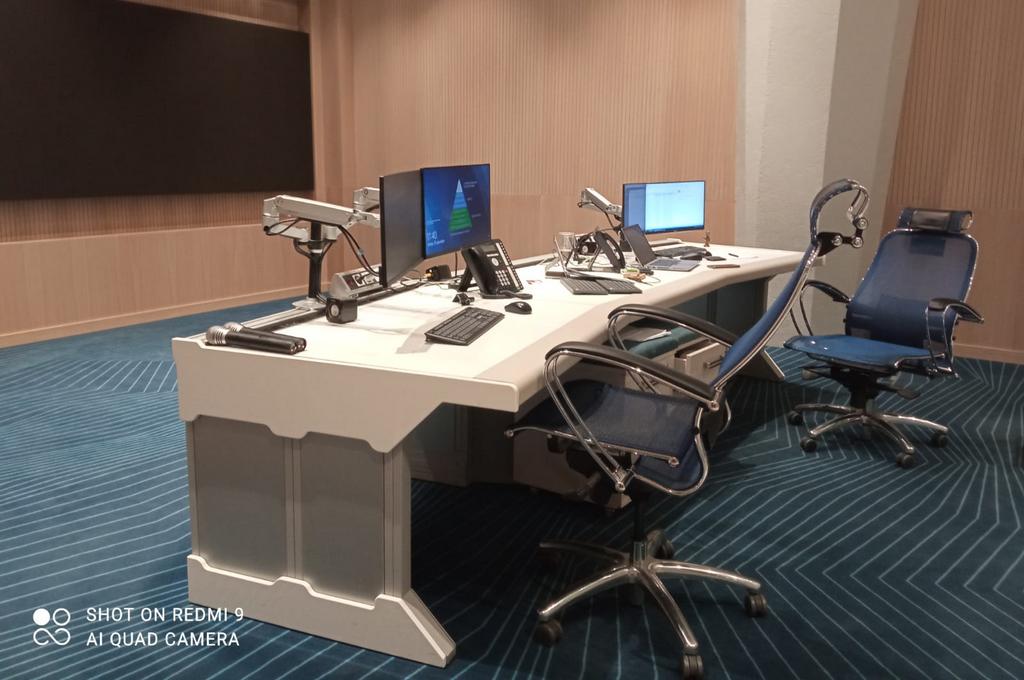 Диспетчерский стол, мультимедийный стол для переговоров и рабочее место оператора конференции.